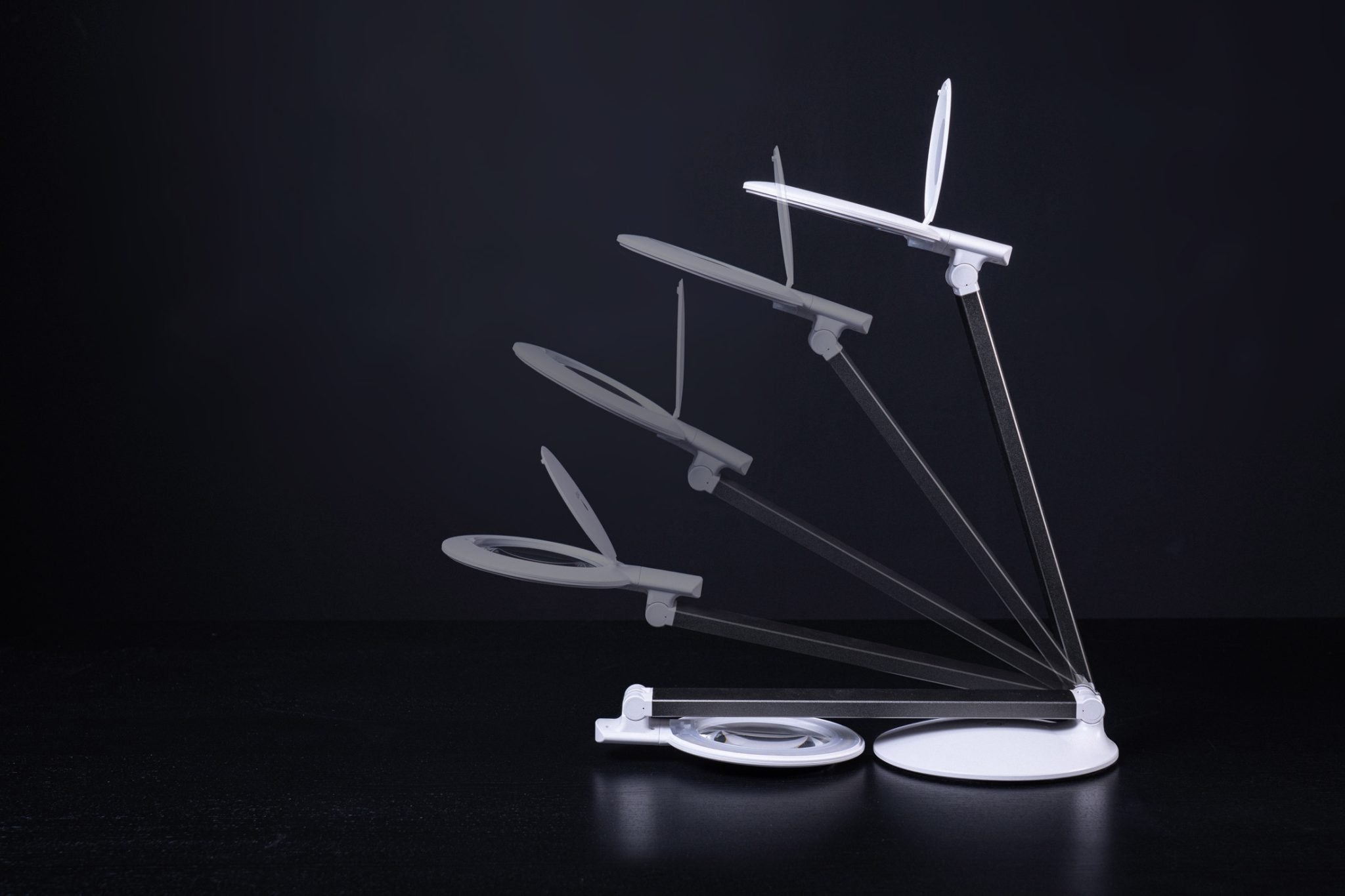 This truly portable lamp with magnifier comes with a USB rechargeable battery. The brightness remains consistent for the full 8 hours. The LEDs circle the magnification lens for a uniform lighting over your project. Offering 5 dioptres (2.25X) magnification with a 12 dioptres (4.0X) inset lens for working on the finest details. Folds flat.